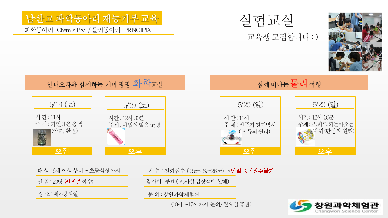 남산고 과학동아리 재능기부교육 교육생 모집안내