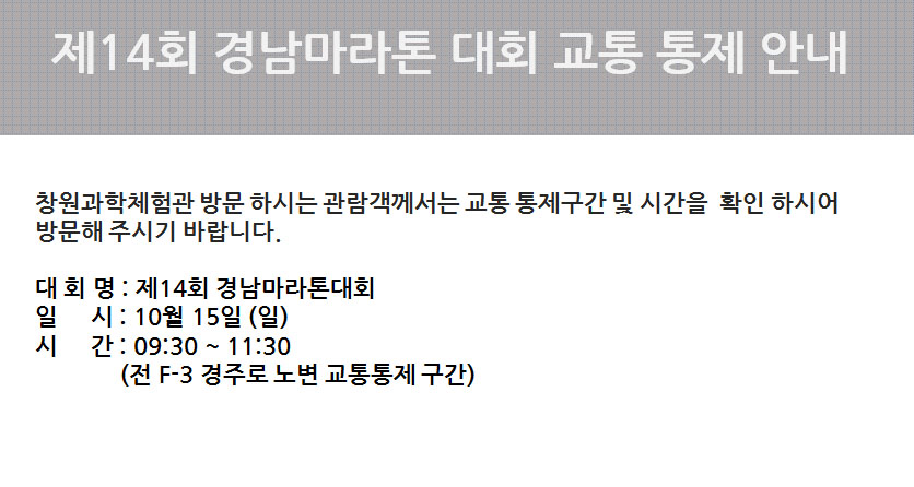 [공지] 10월 15일(일) 경남마라톤대회 교통통제 안내