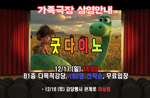 [공지] 주말가족극장 12/16(토) 미상영 안내