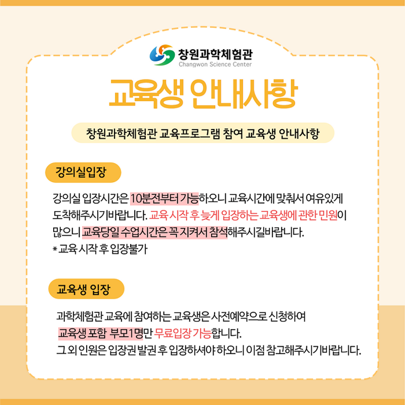 * 교육 취소 시 과학체험관으로 꼭 연락바랍니다.