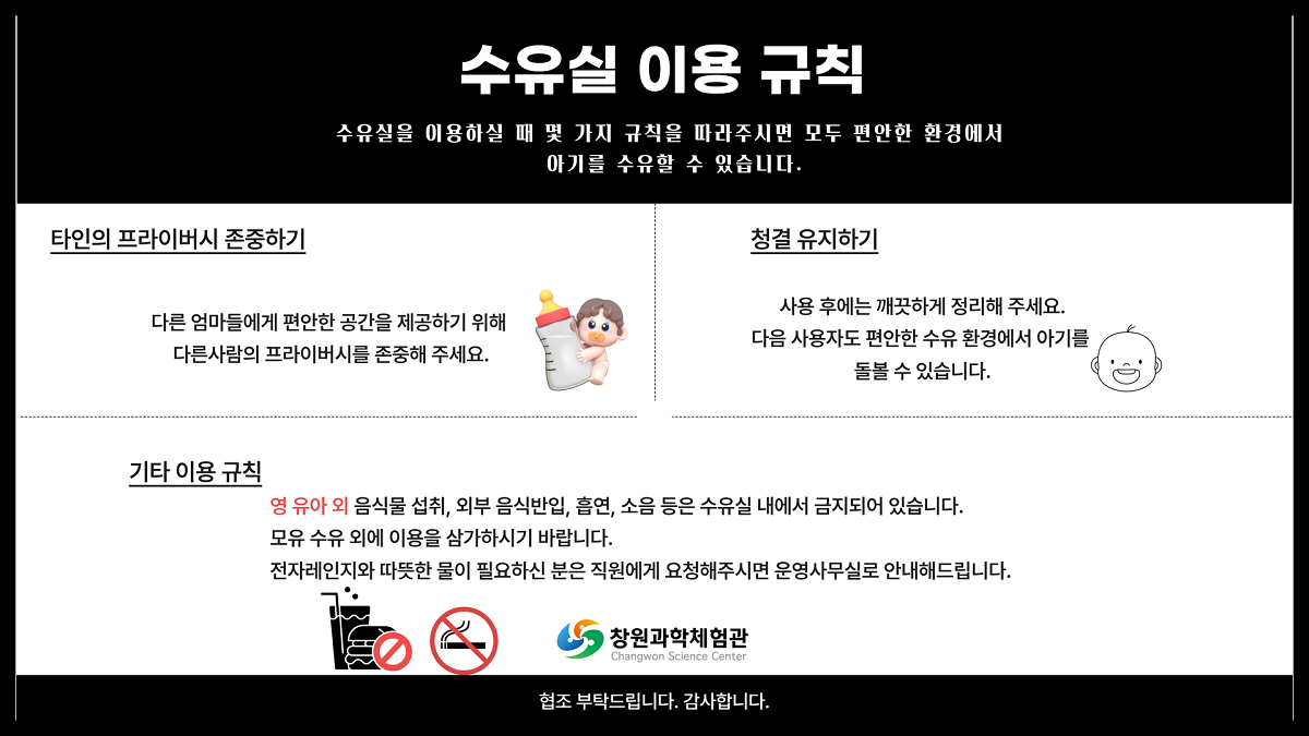 전시관 내 음식물 반입은 금지입니다.