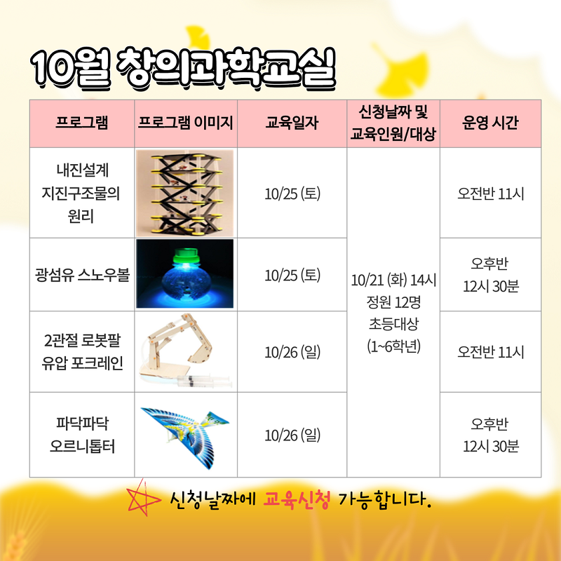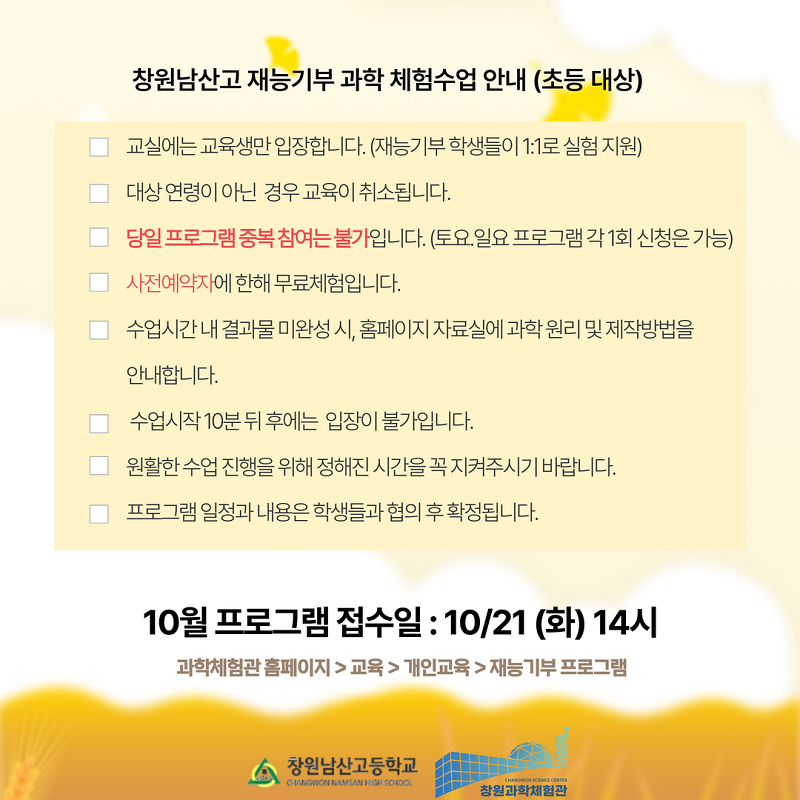 * 교육 취소 시 과학체험관으로 꼭 연락바랍니다.